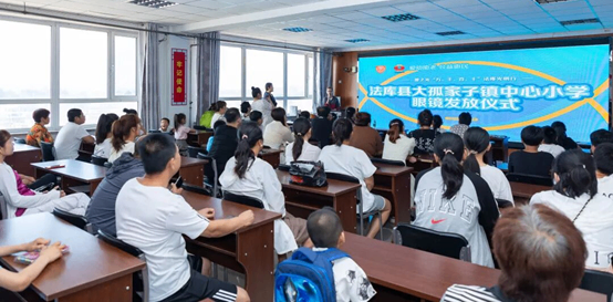 热烈庆祝中国人民解放军建军96周年,2023年7月12日,爱之光“万、千、百、十”法库光明行公益项目——“爱之光·萤火虫明目计划”大孤家子镇中心小学发放眼镜。辽宁爱之光防盲基金会理事长王芳女士、法库县慈善总会会长霍达非先生、大孤家子中心小学副校长张莉女士,以及30名近视学生和家长参加本次活动。